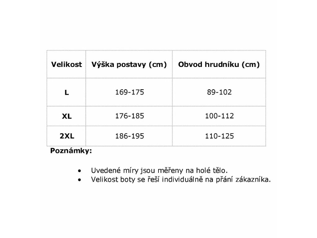 • Konštrukciu obleku tvoria: nohavice s nastaviteľnými popruhmi na ramenách, vnútorné vrecko na zips v hornej časti.